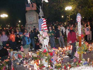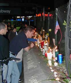 Some shots from the candlelight vigil at Union Square, New York, Friday night 9/14/01.