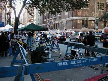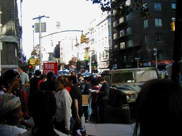 Saturday in Manhattan. Military Hummer by prayer station. The flyers of the missing are everywhere.
